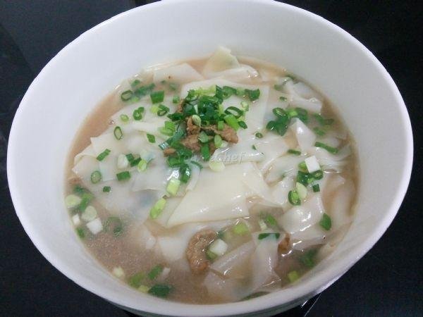 - 加入已醃了的肉片弄散,煮2 分鐘,加蔥花,上碗享用。