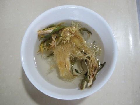 - 將豬展飛水10分鐘備用; 將霸王花切好,百合,薏米一起浸泡15分鐘待用。