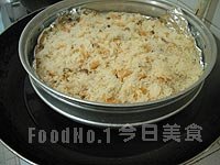 將浸發了的乾扇貝肉、乾冬菇和糯米一起蒸 (約2小時) 。