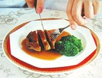 品嚐鮑魚應用刀叉,順應鮑魚纖維,