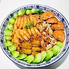 粟米馬蹄紅蘿蔔排骨湯 薑汁煎雞翼 蠔仔肉碎粉絲 蒜茸蒸茄子