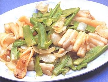 桂 花 蚌 1 磅 百 合 3 兩 芥 蘭 骨 3 兩 中 芹 菜 2 兩 地 魚 末 1 兩 材料一覽 魚 露 1 茶 匙 味 精 1/4 茶 匙 糖 1/2 茶 匙 生 粉 1/2 茶 匙 湯 2 湯 匙 花