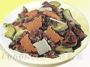肥牛六兩 翠玉瓜半斤(切片) 紅蘿蔔(切片) 蔥適量 蒜茸一湯匙 XO醬一湯匙 將油鑊燒熱後加入蔥、蒜茸、XO醬爆香 加入肥牛、翠玉瓜、紅蘿蔔片快炒約一分鐘 以鹽、糖調味炒勻即可