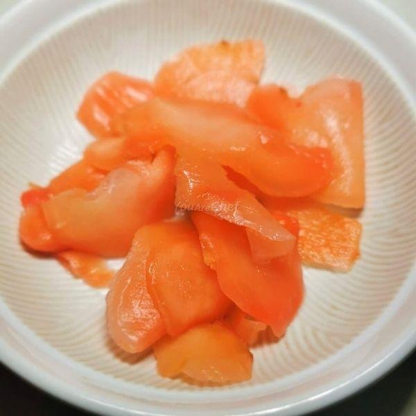 3). 將子薑片放入冷却的糖醋汁中,拌勻即可入瓶,入瓶後醃漬2-4天便可食用。