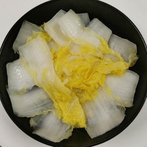 冬菇隔夜浸發 , 清洗四五次,加入粟粉/太白粉, 用手抓拿一會, 再沖水;紹菜用熱/滾水加小許鹽油拖焯2 分鐘後, 擺放在碟子備用。