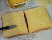 - 先放塗了牛油的麵包在烤爐(多士焗爐)內約2分鐘後
