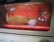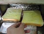 先放塗了牛油的麵包在烤爐(多士焗爐)內約2分鐘後